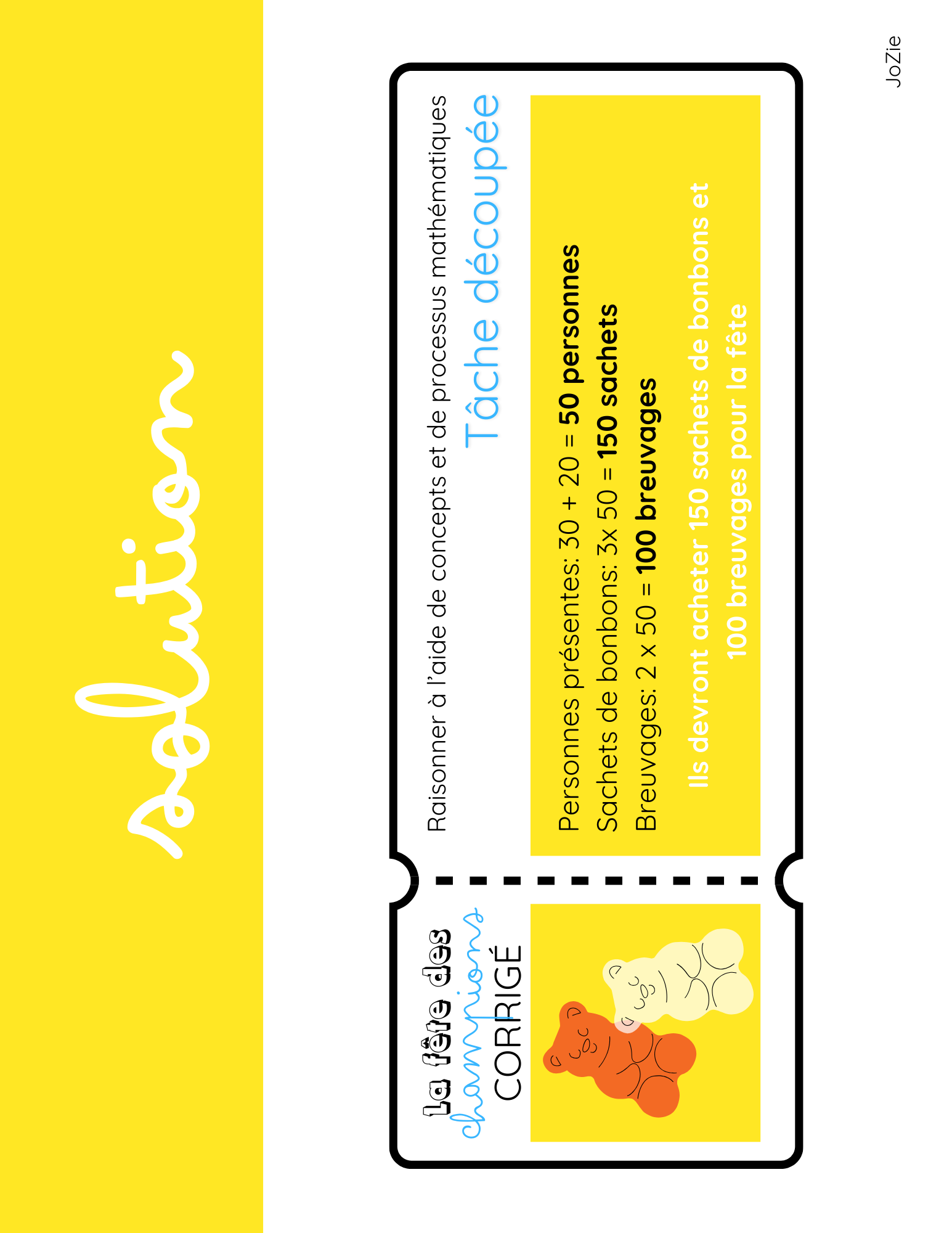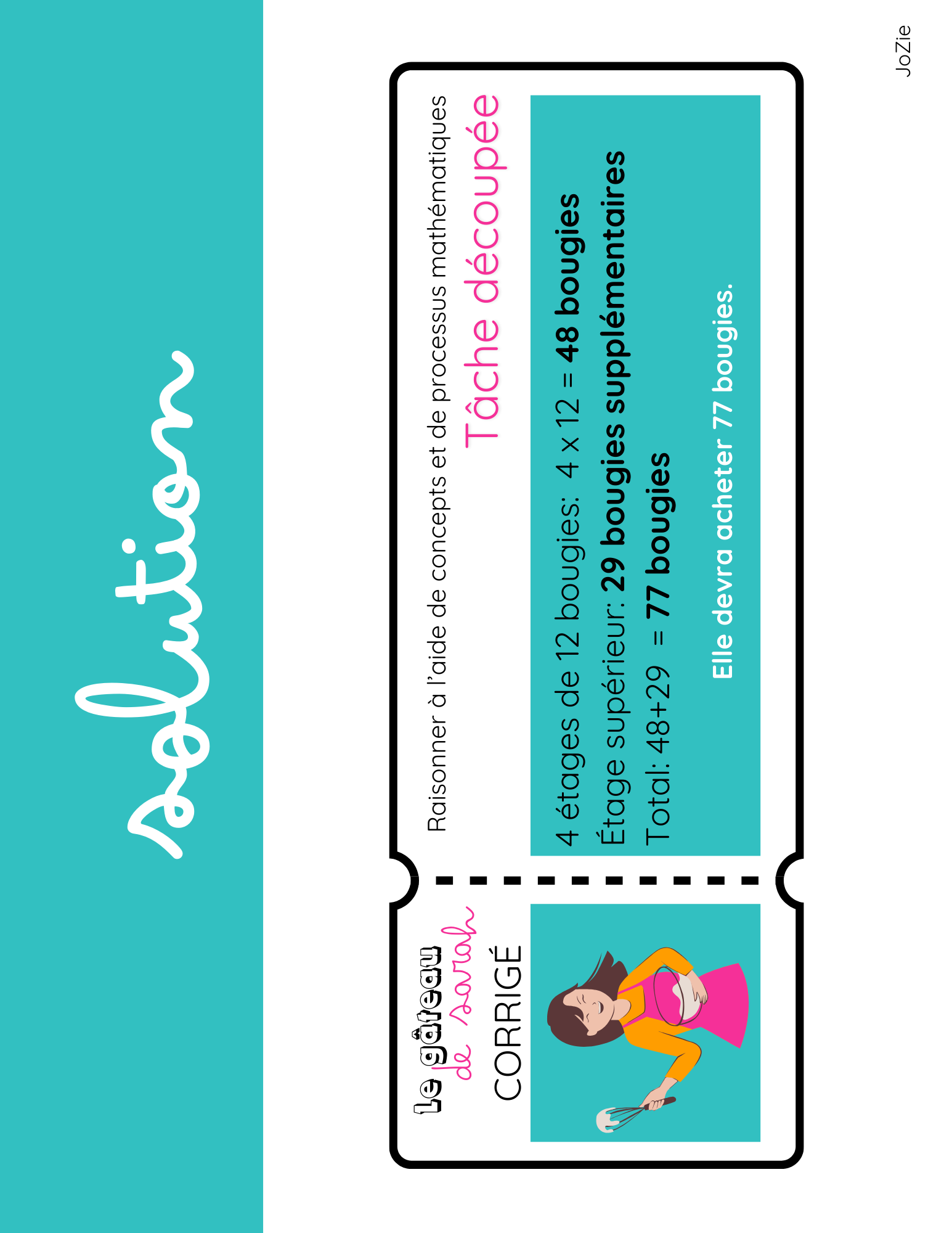 Les 3 tâches découpées travaillent les concepts d'addition, de soutraction et de multiplication.