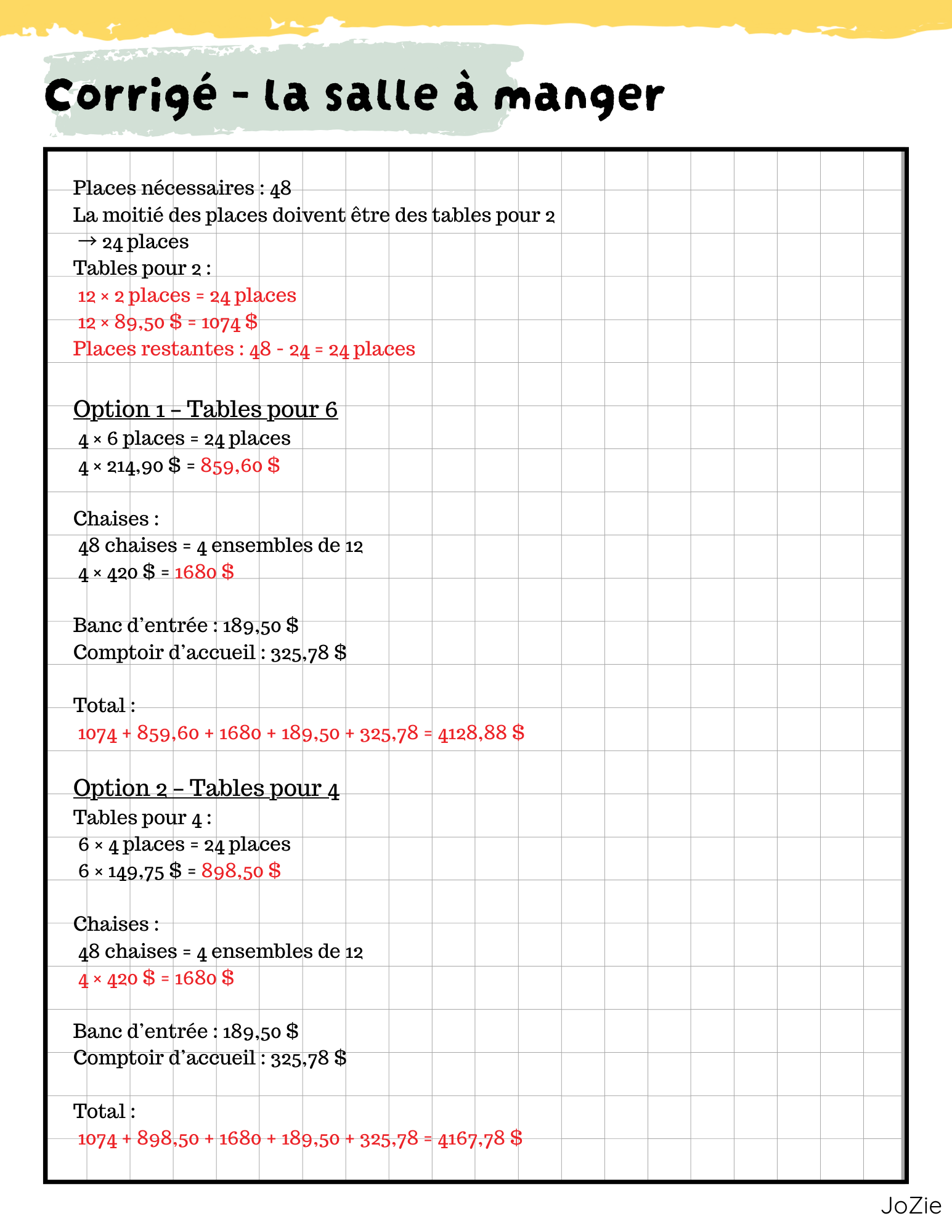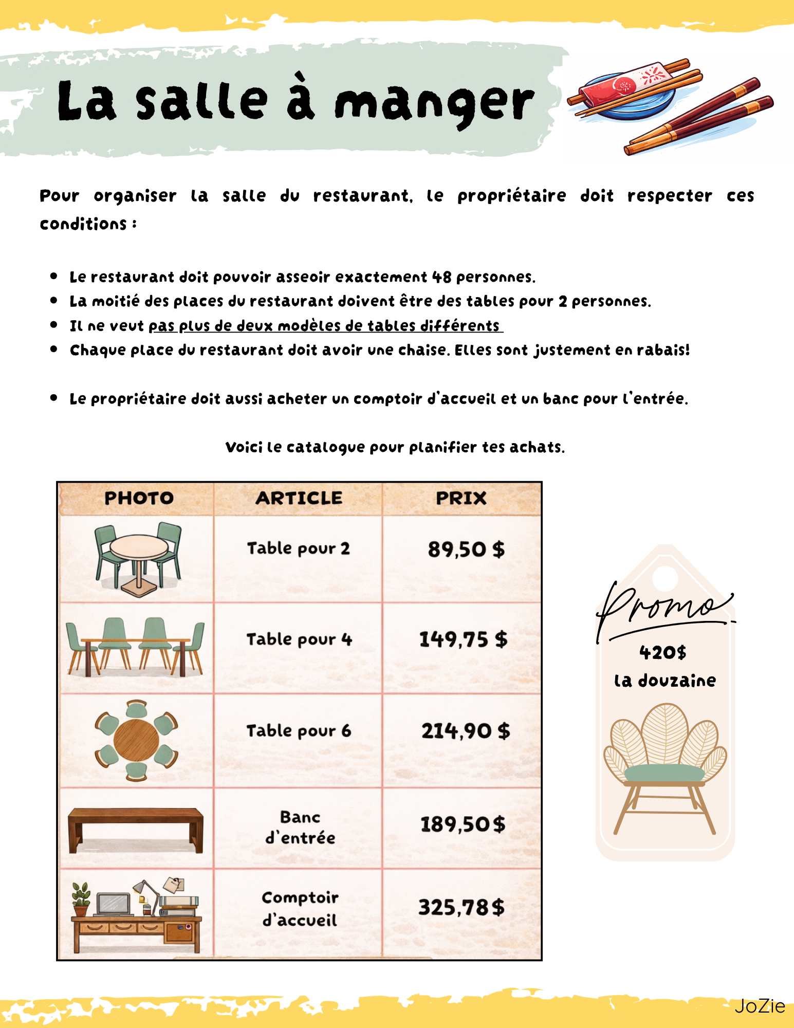 À travers trois situations-problèmes de raisonnement, les élèves devront prendre des décisions importantes pour organiser le restaurant :