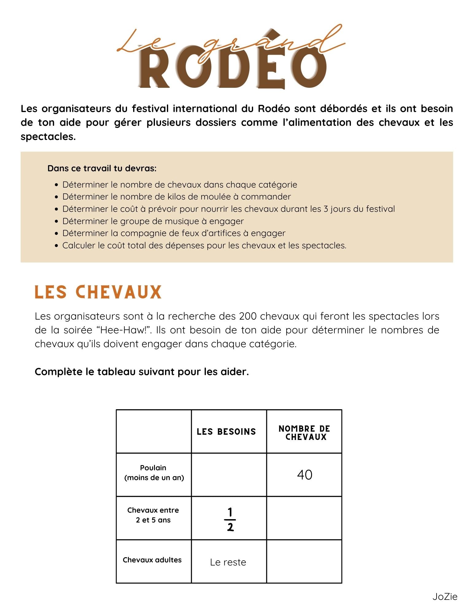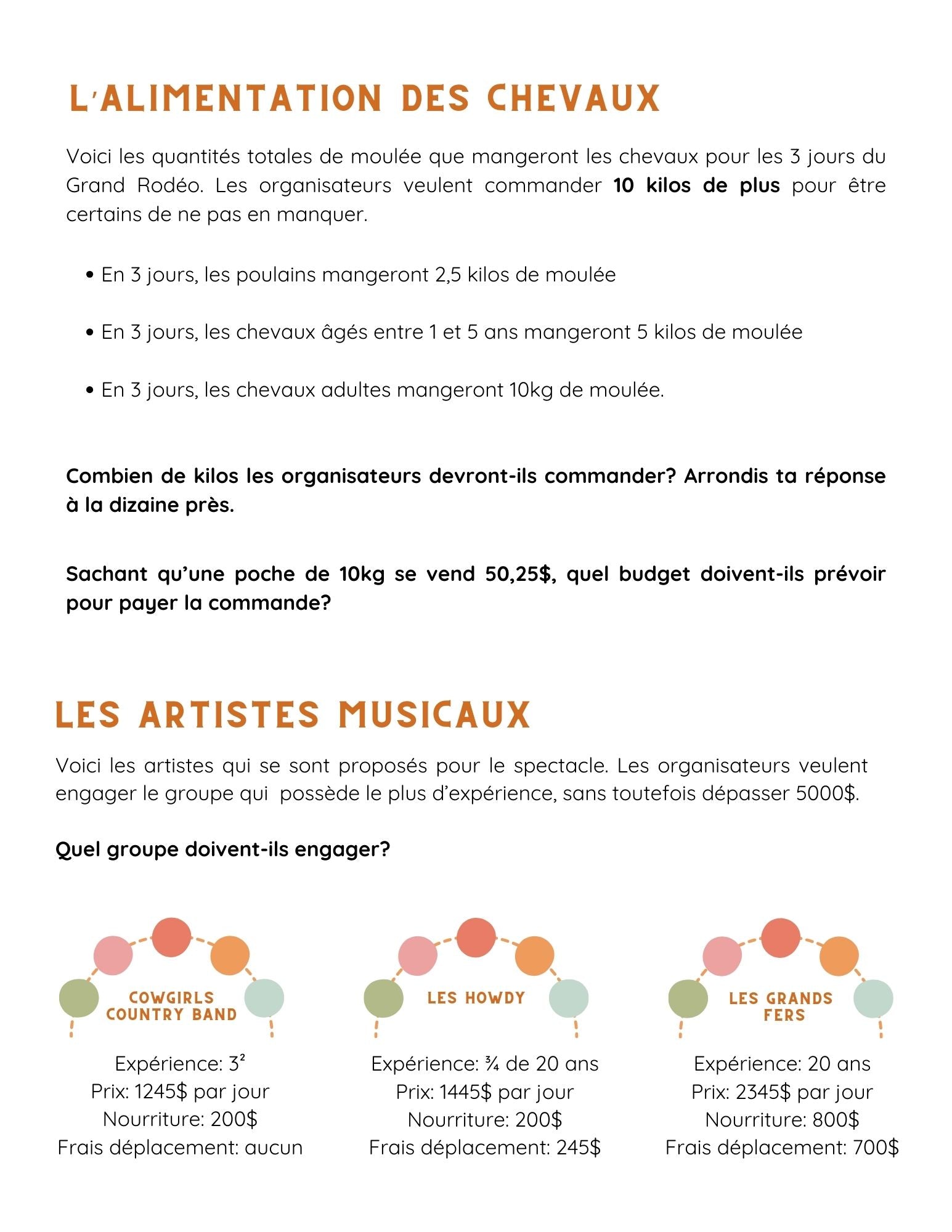 Dans ce petit résoudre à saveur country, vos élèves doivent aider à l'organisation d'un festival de rodéo en résolvant une grande situation-problème!