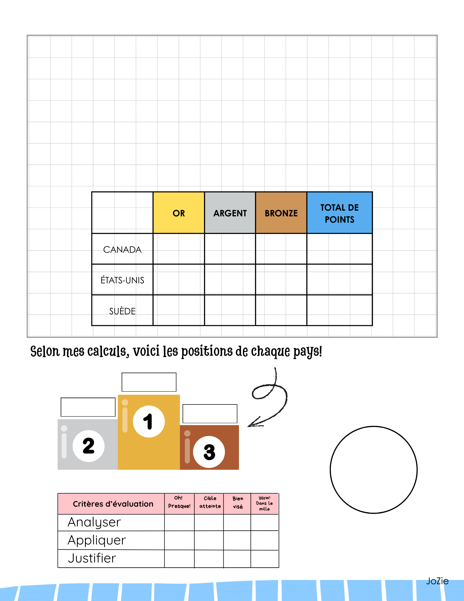 Une tâche stimulante et motivante pour travailler le raisonnement mathématique! Les élèves doivent analyser une situation inspirée des Jeux olympiques, utiliser les multiplications et les fractions, justifier leur démarche et établir le podium final à partir d’un tableau de médailles.