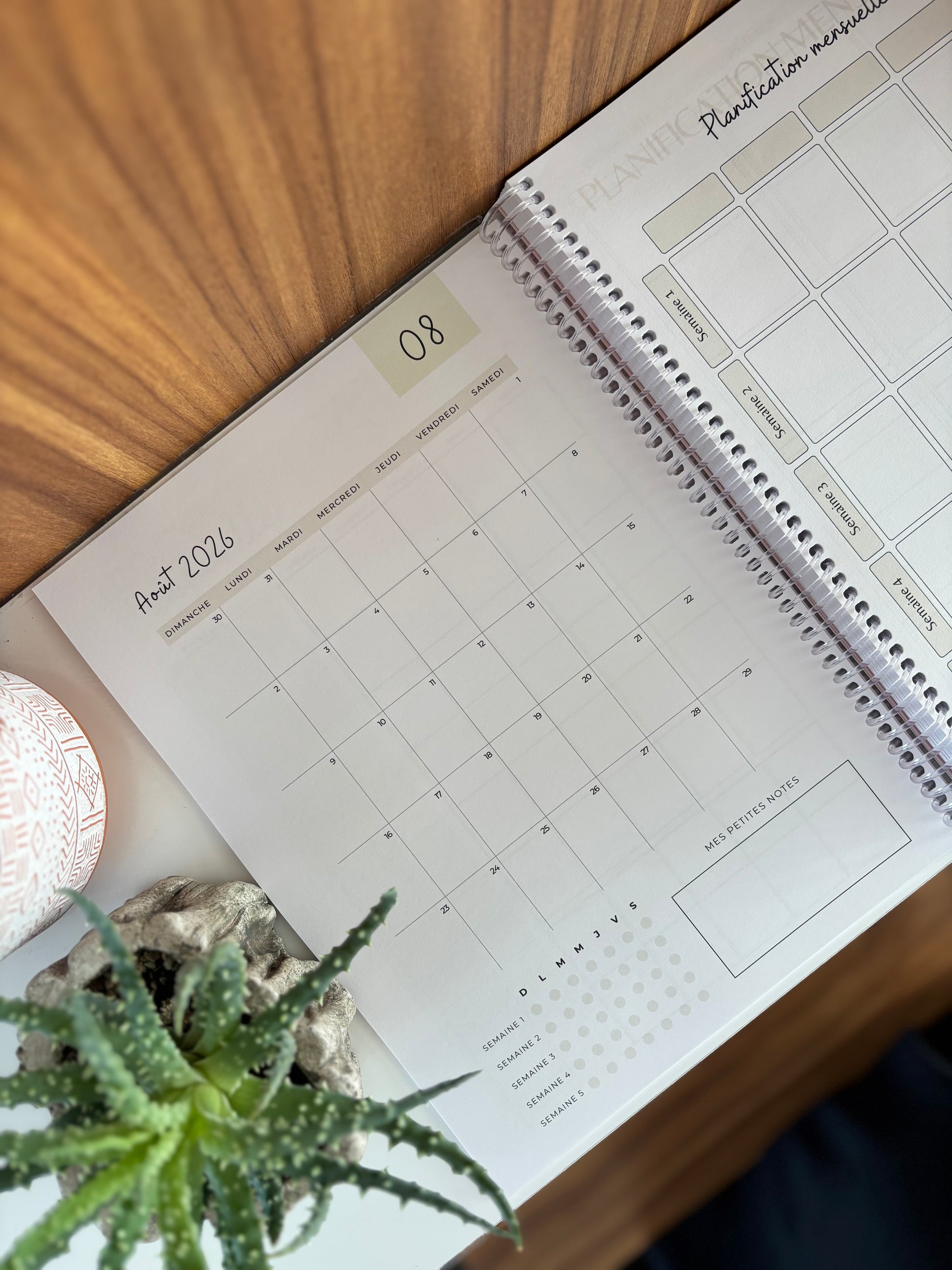 Plus qu’un simple agenda, il propose aussi plusieurs outils pratiques pour structurer votre année : calendrier annuel, planification mensuelle, pages de notes et citations inspirantes pour accompagner chaque semaine!