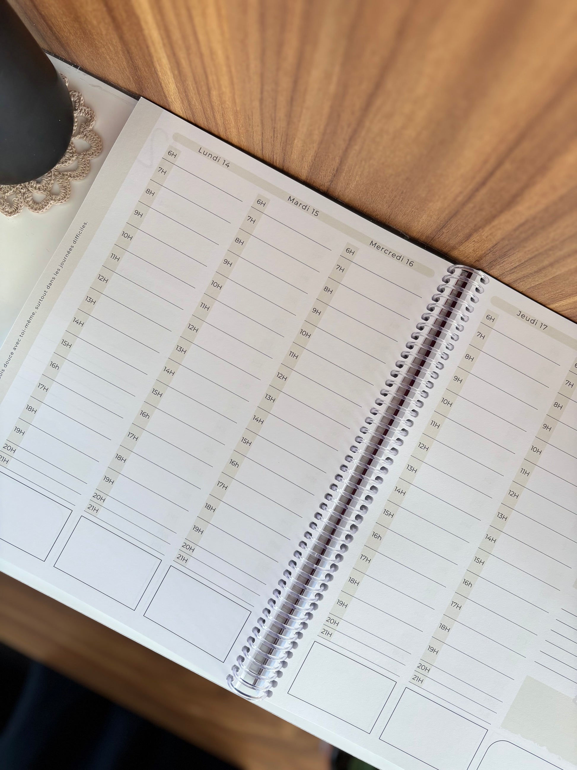 Un agenda élégant et inspirant conçu pour organiser votre quotidien avec simplicité et efficacité. Sa mise en page claire offre une vue d’ensemble de chaque semaine tout en laissant suffisamment d’espace pour noter rendez-vous, tâches et idées.