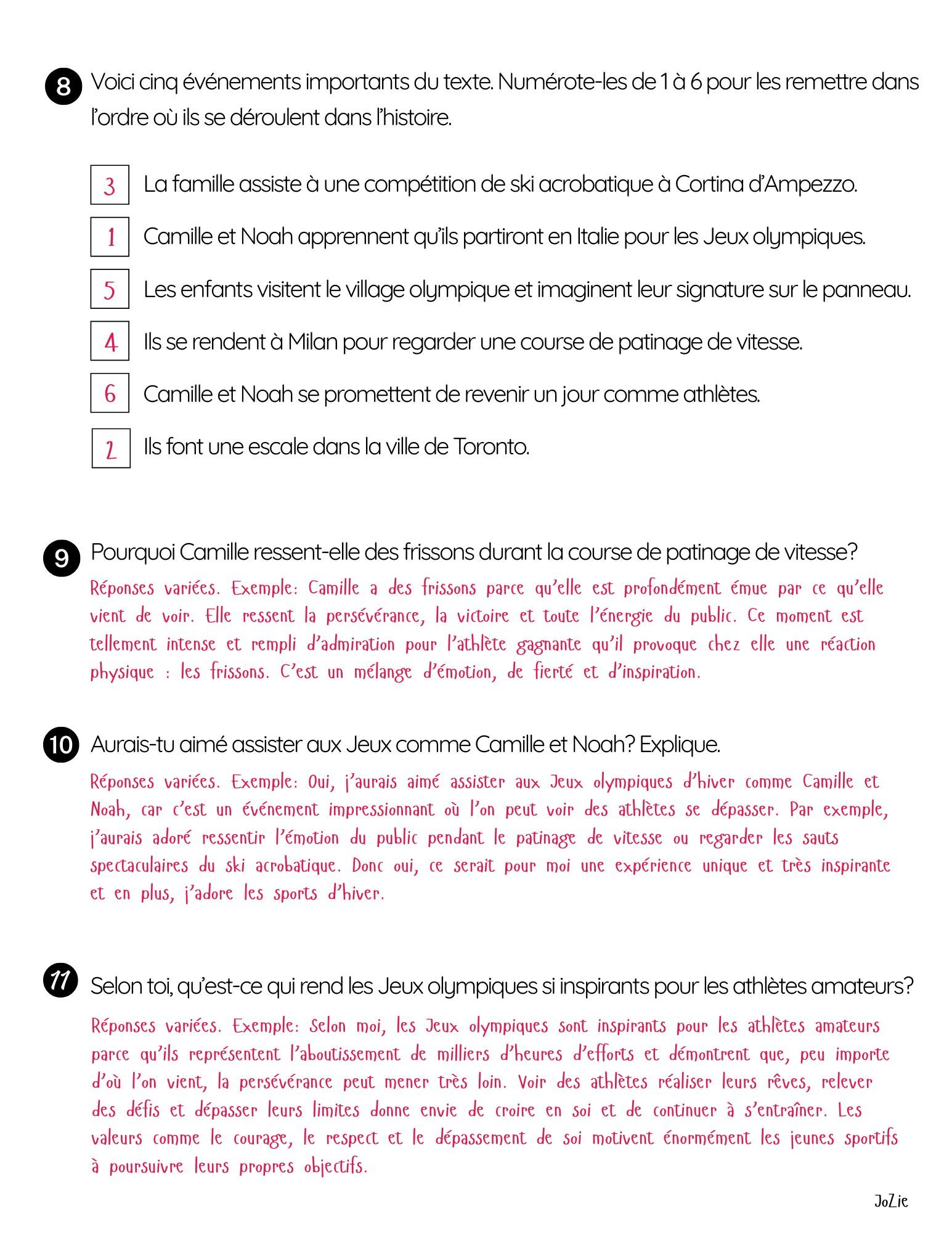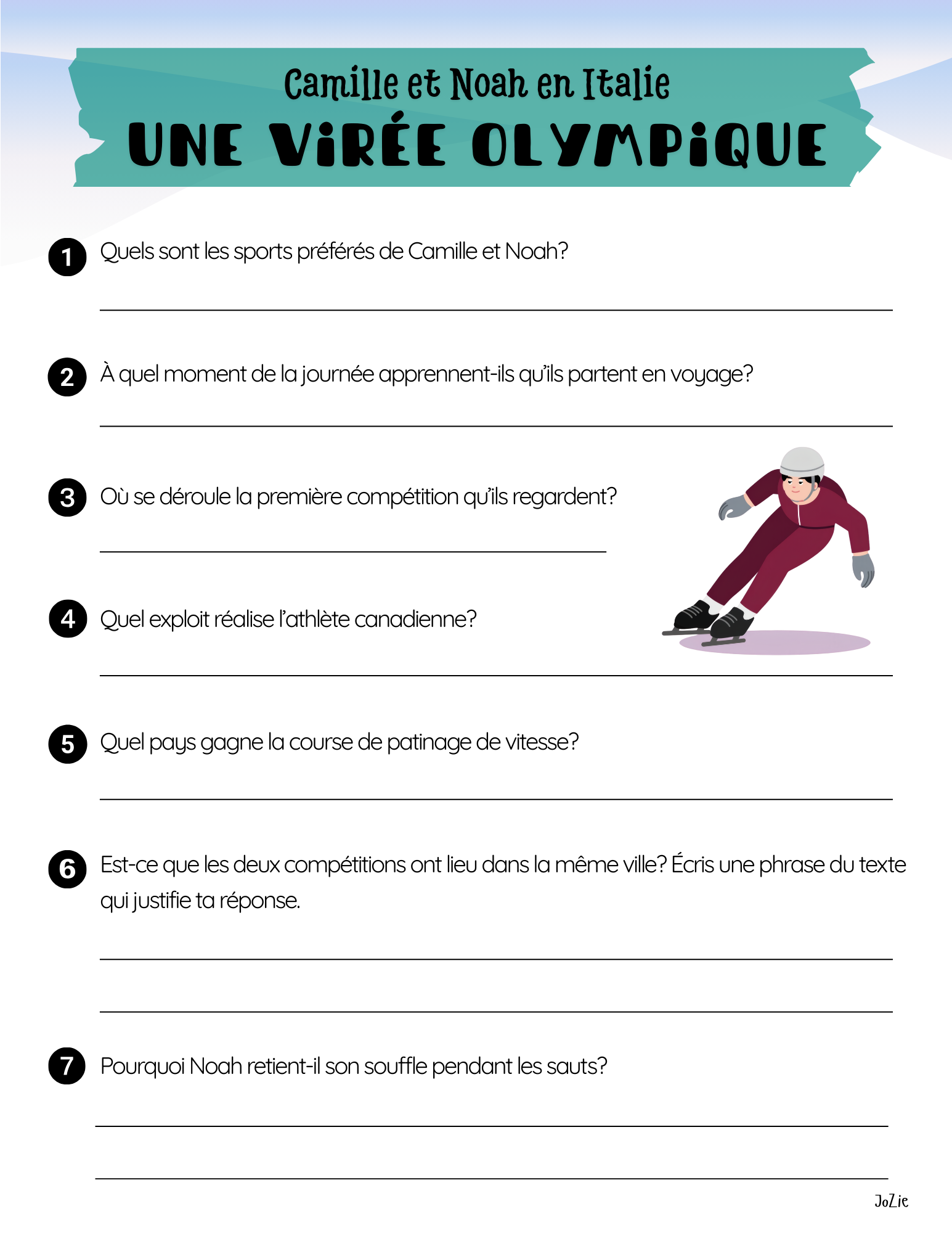 Accompagne Camille et Noah dans une aventure palpitante au cœur de l’univers olympique! Ce texte littéraire captivant, suivi d’un questionnaire complet, permet d’évaluer la compréhension, l’inférence et l’interprétation tout en maintenant l’intérêt des élèves.